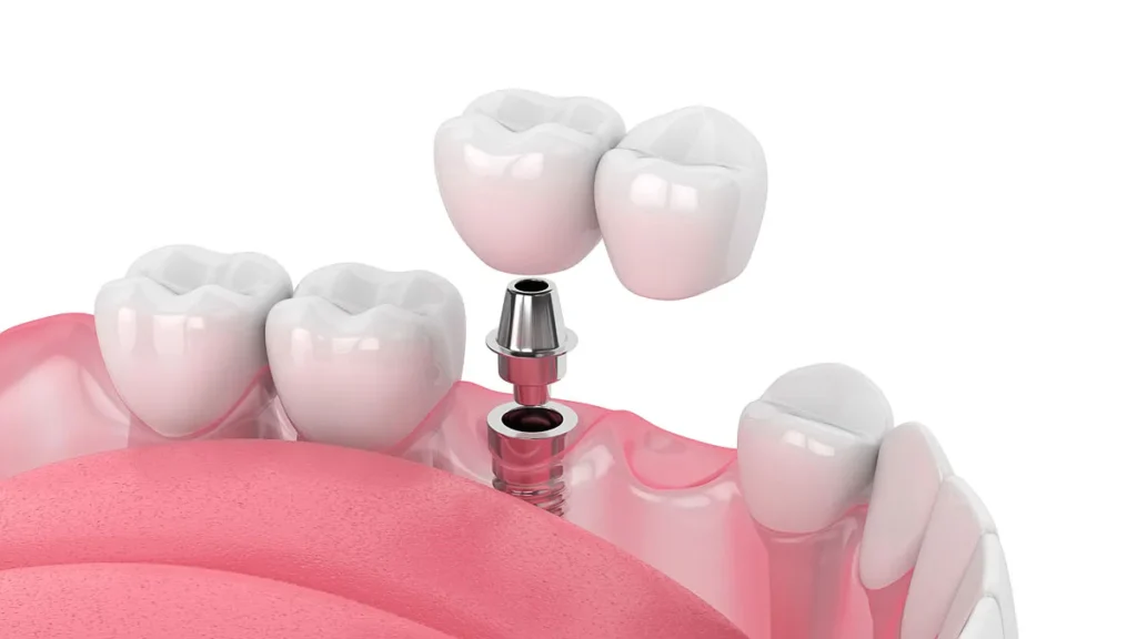 An implant bridge is used when two or more teeth are missing next to each other. Titanium implants act as replacement roots, holding a custom bridge in place for long-term function and appearance. This option is ideal for patients who want a permanent alternative to removable partials and who have sufficient bone support for implants.